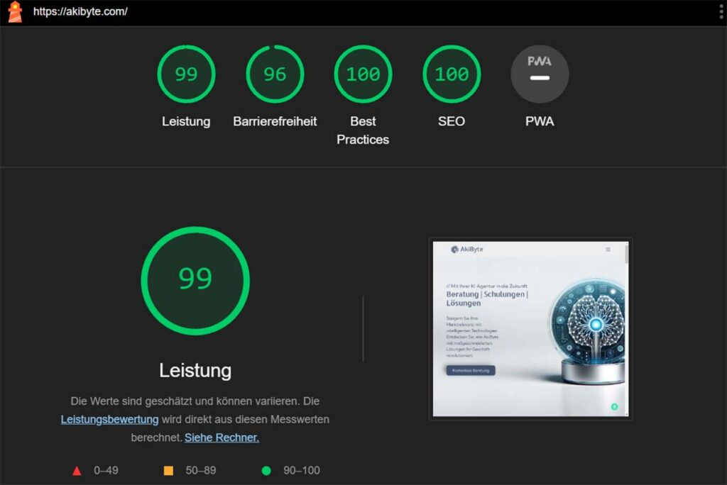 - Performance der Webseite